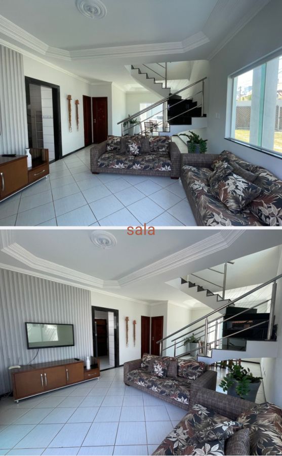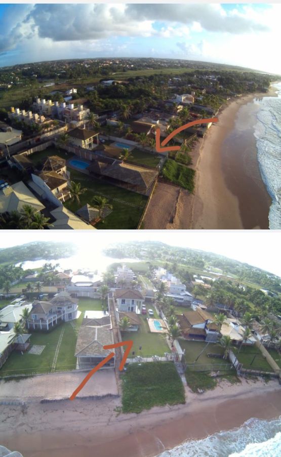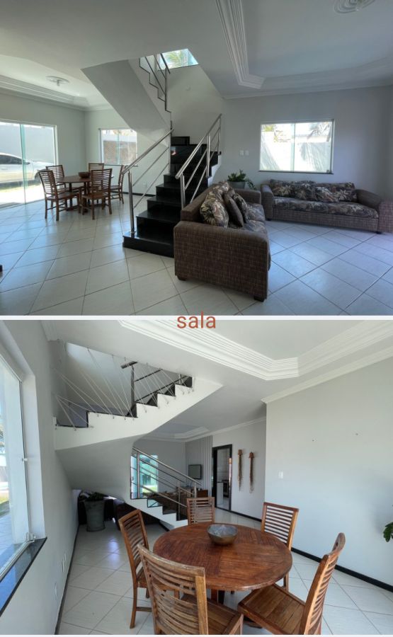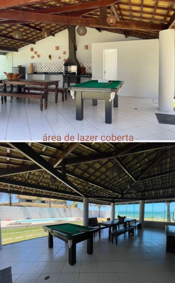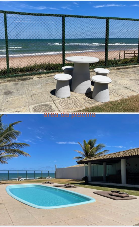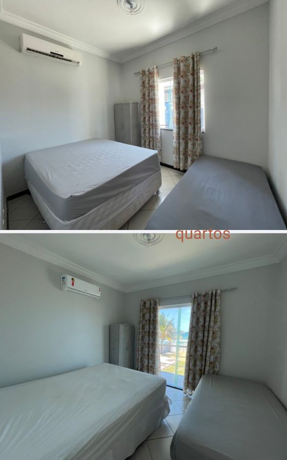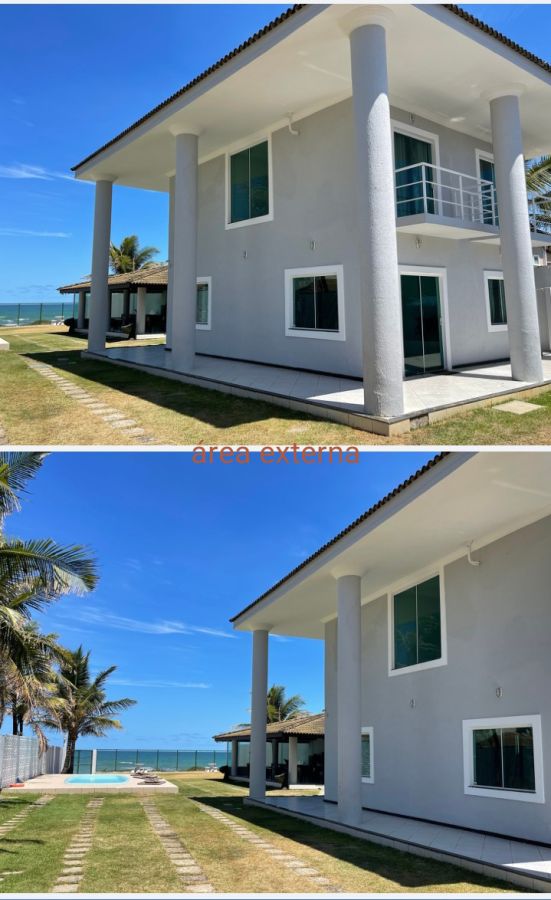 Casa duplex alto padrão pé na areia. Frente com capacidade para vários veículos, piscina, térreo com 1 quarto e banheiro,área de recreação com churrasqueira. No 1o andar 3 quartos com banheiro,. Mobiliado. (Não vem com roupa de cama, vc tem que levar a sua)